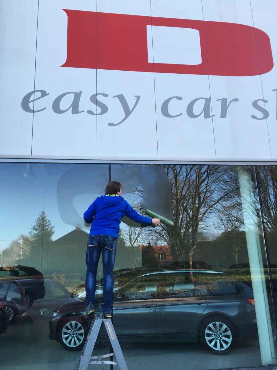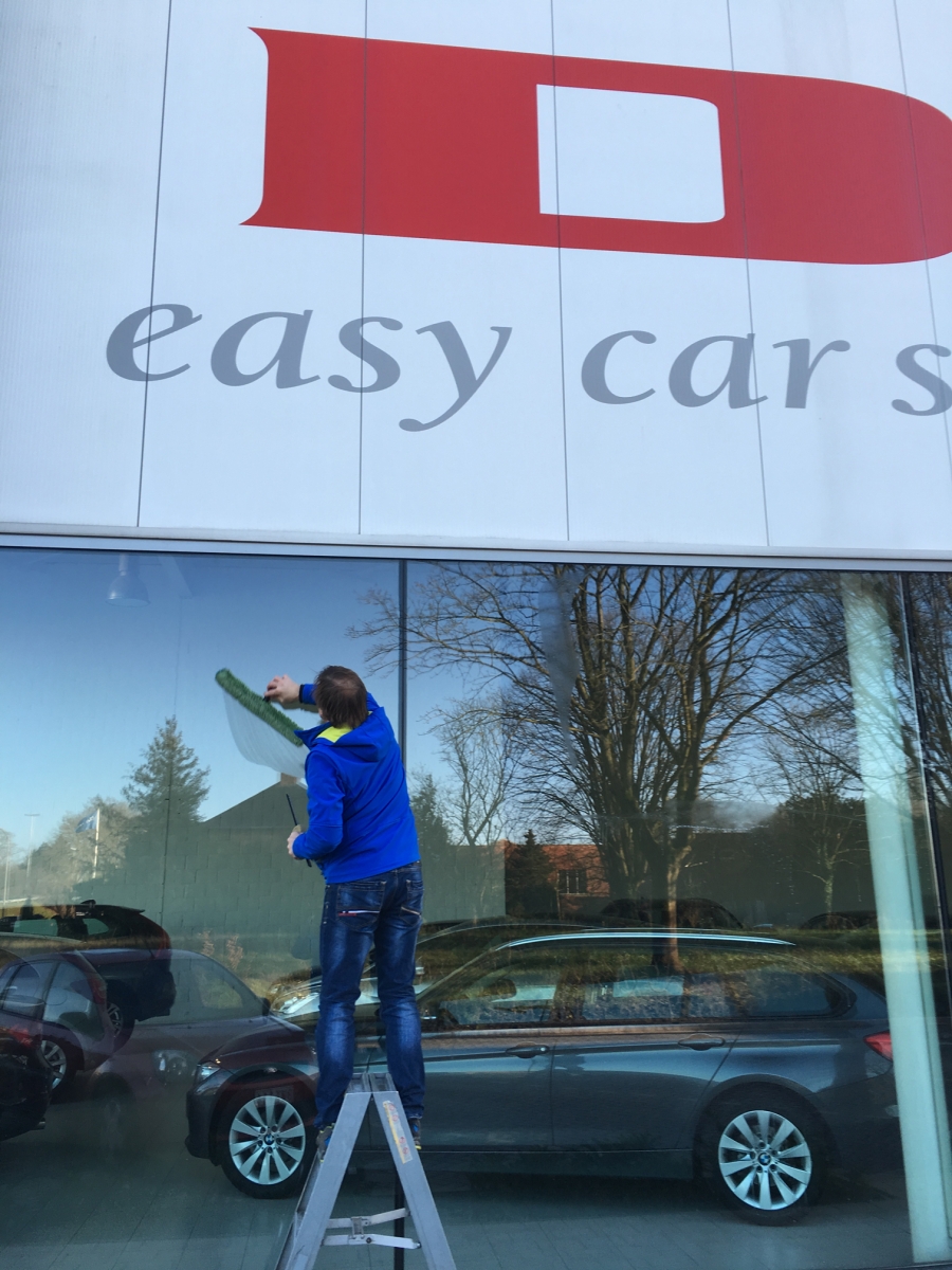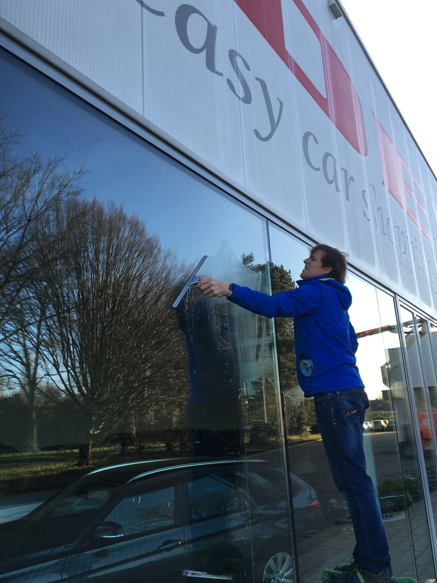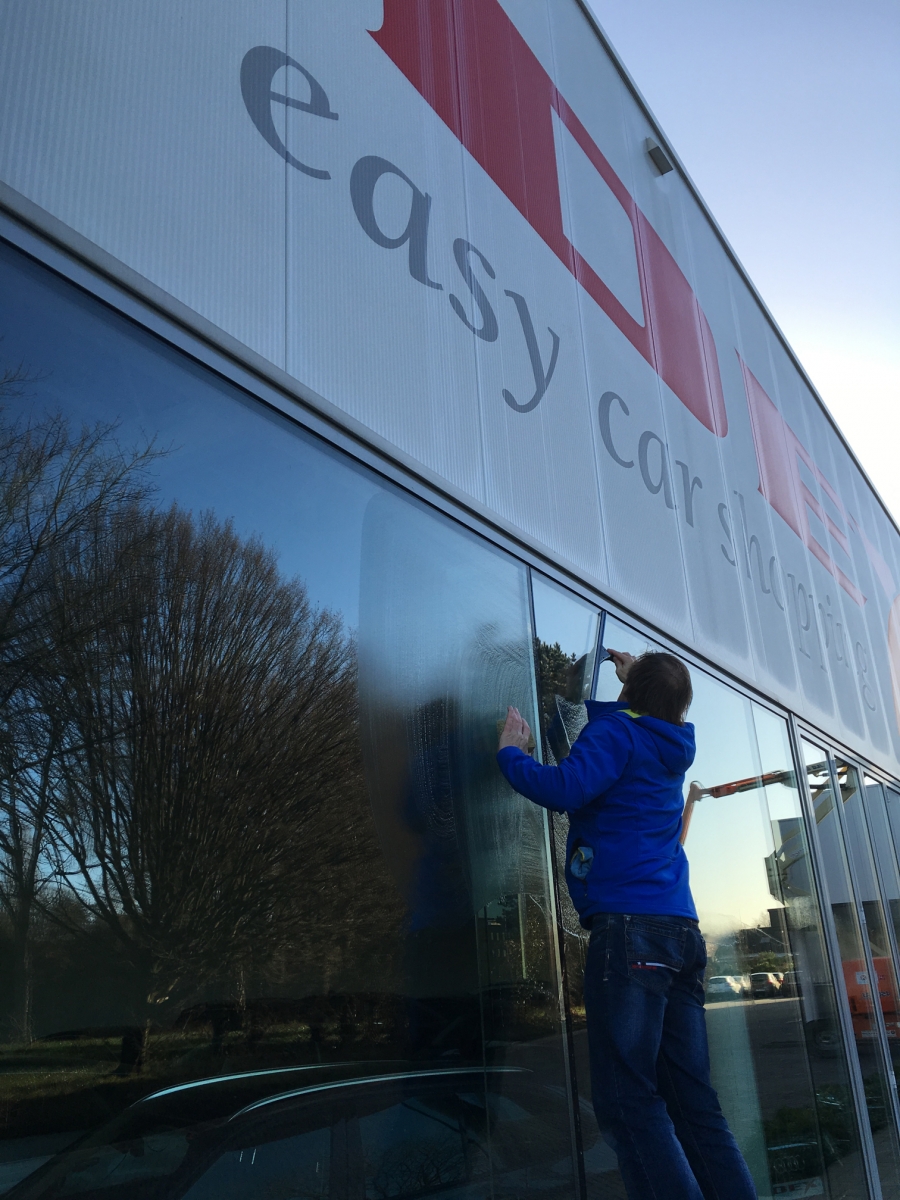 Voor Dex Easy Car Shopping staan wij periodiek in voor het wassen van hun toonzaal ramen.