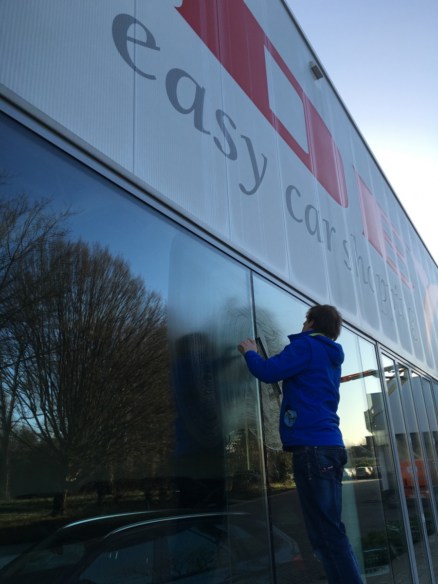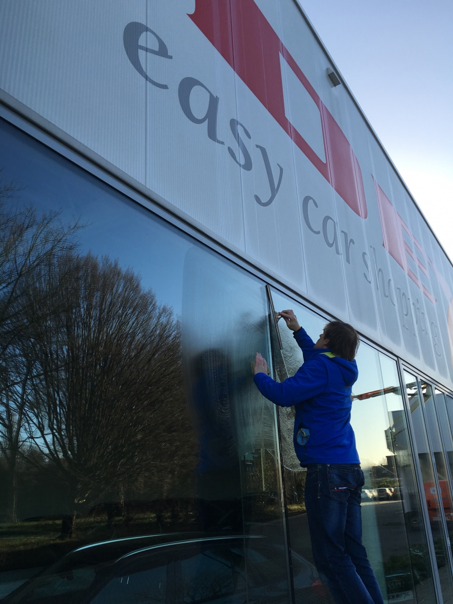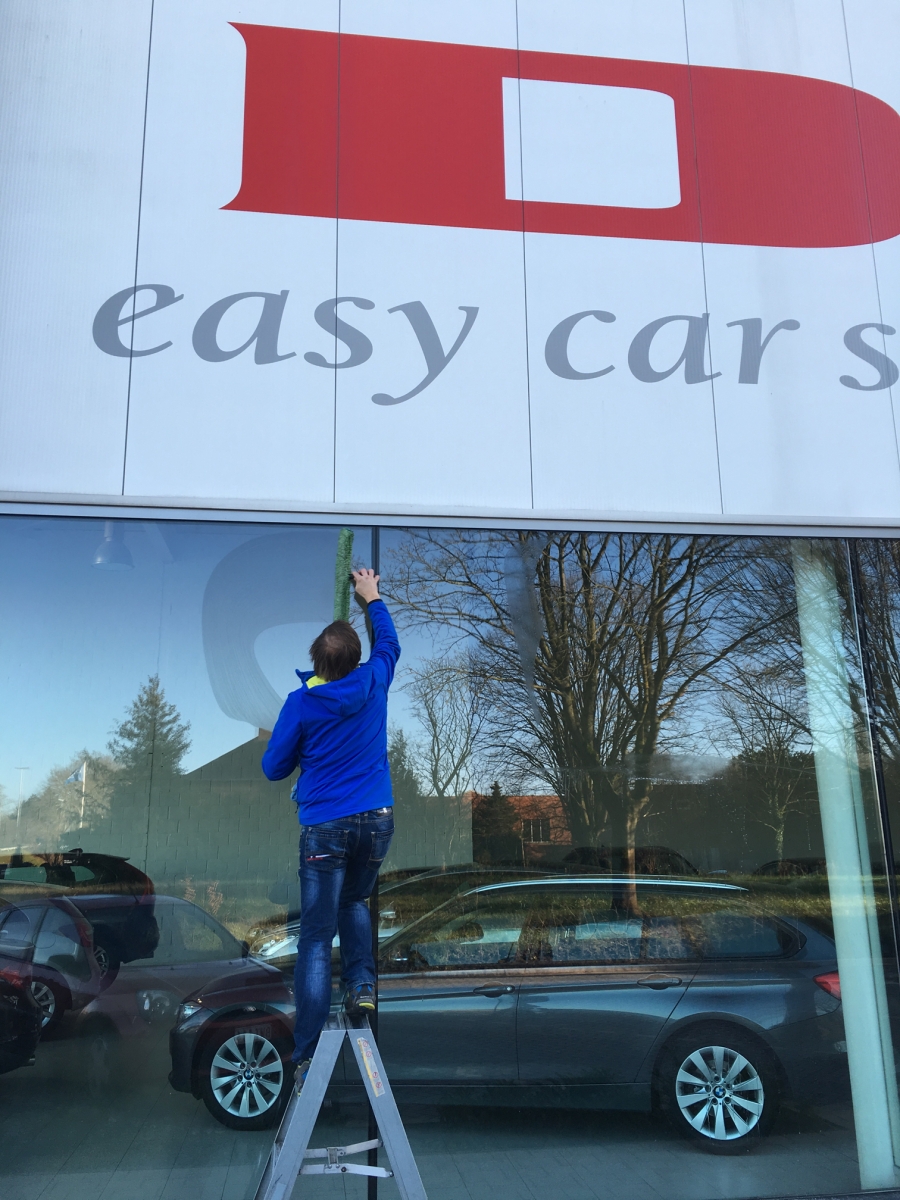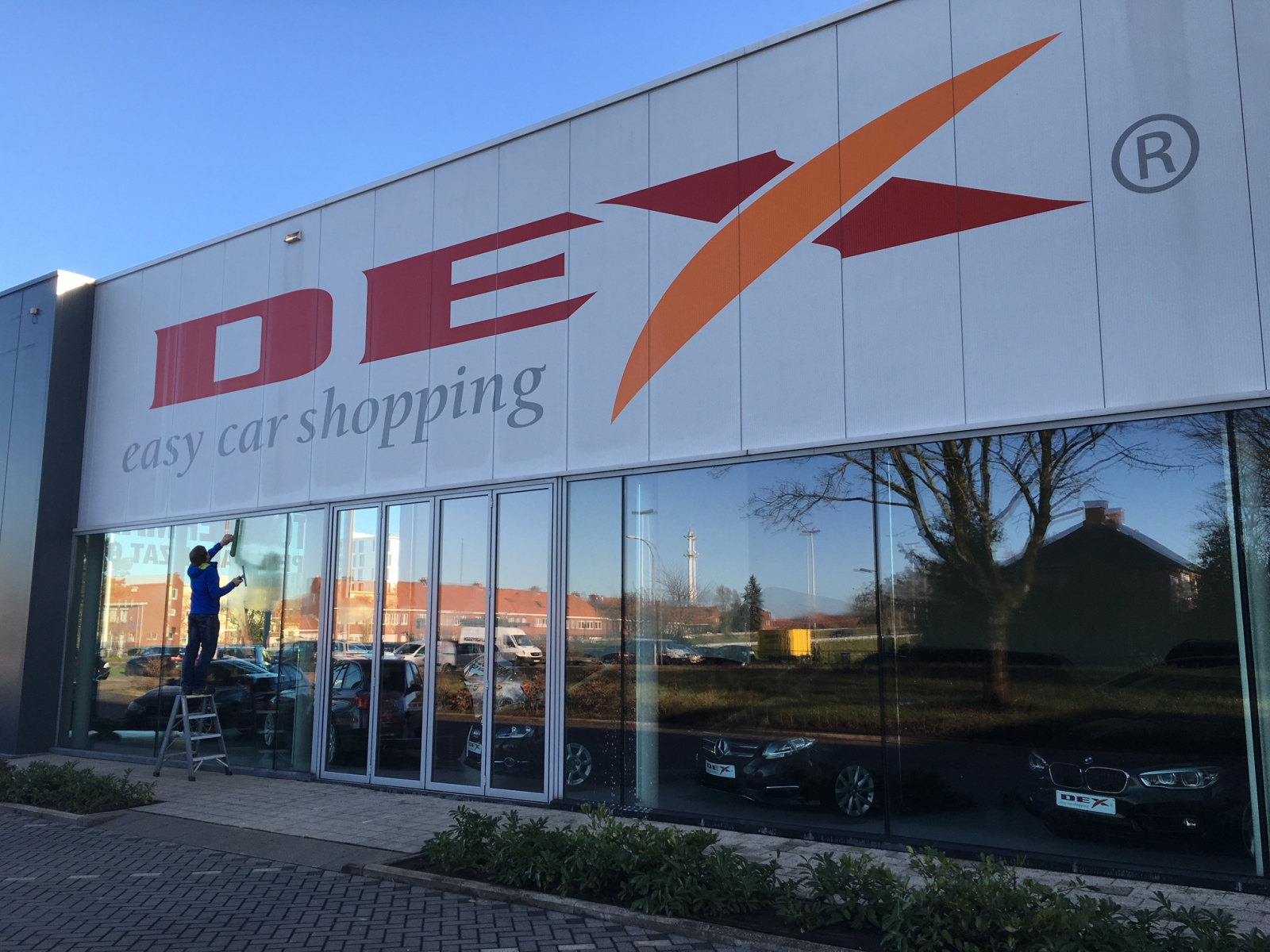 Voor Dex Easy Car Shopping staan wij periodiek in voor het wassen van hun toonzaal ramen.